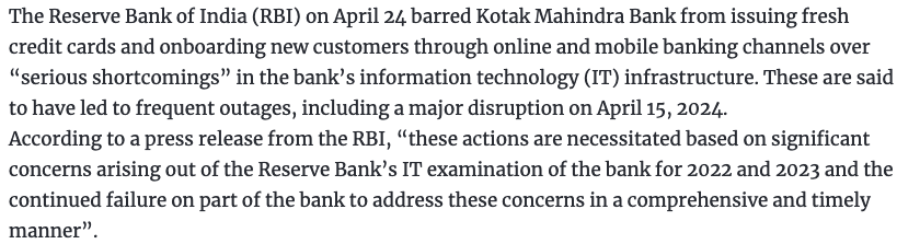 RBI has taken similar action on the now-defunct – Paytm Payments Bank, and Urban Co-operative Banks, etc.
